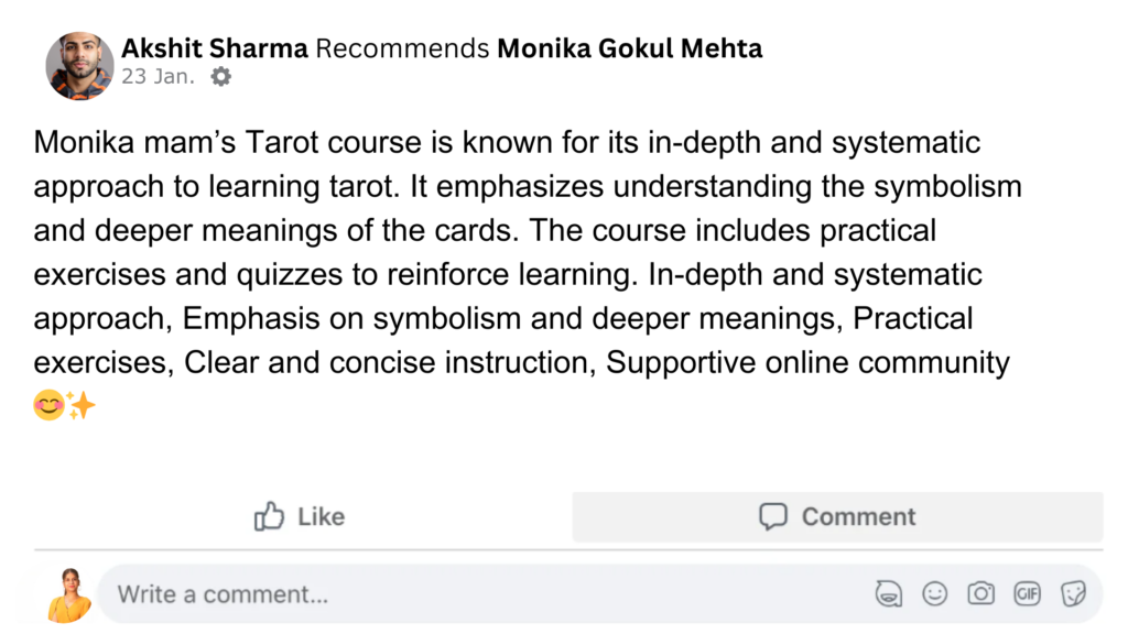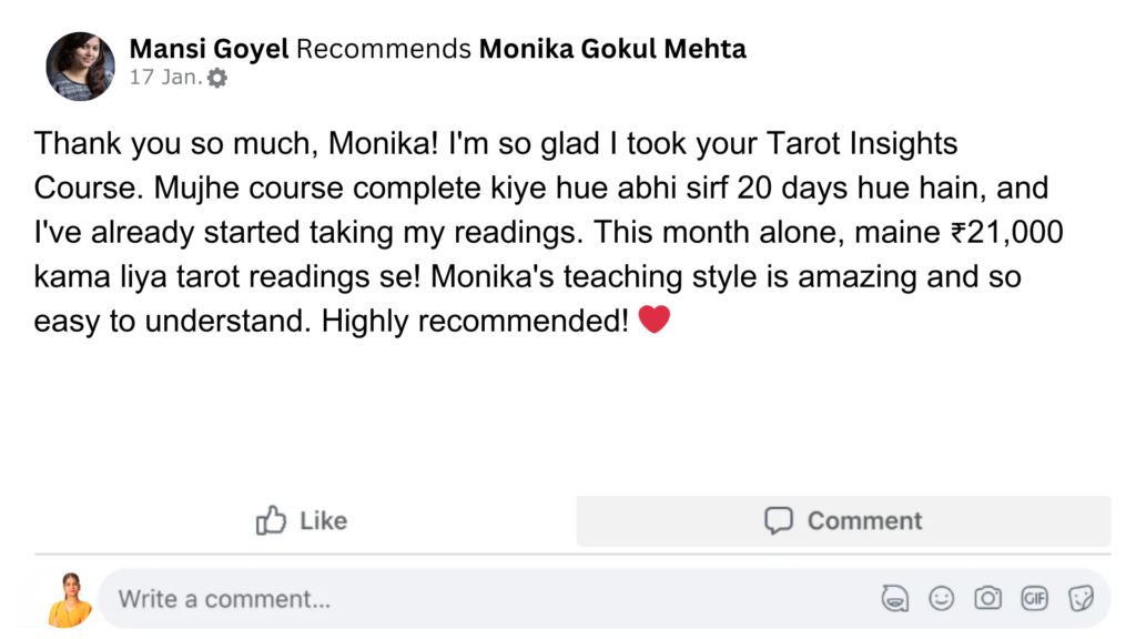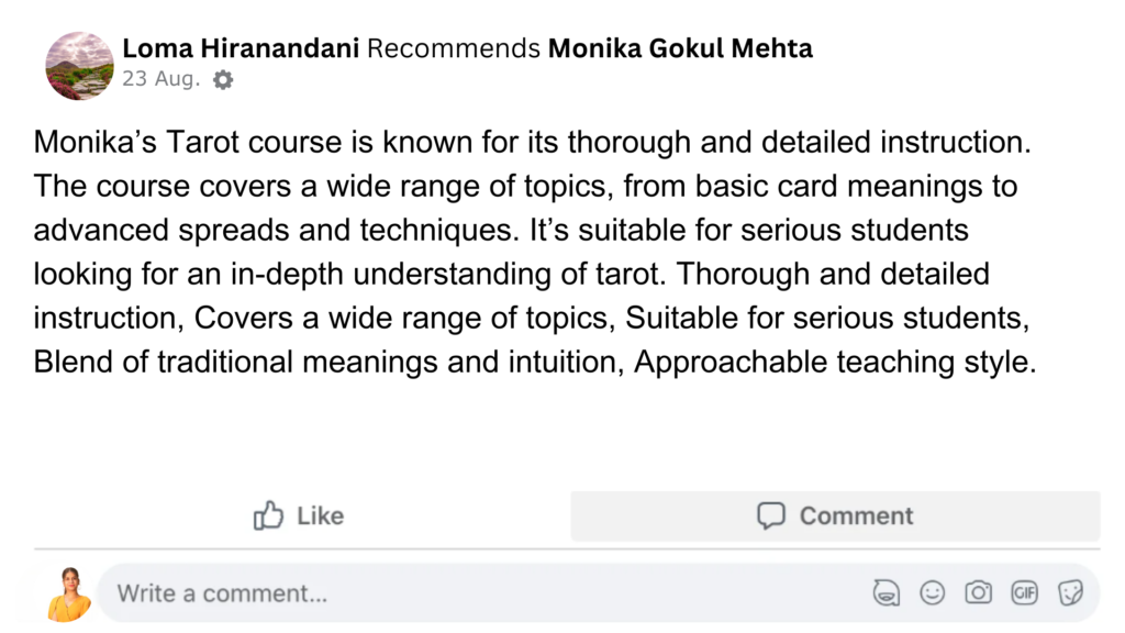 Hi there! I’m Monika, and I’m thrilled to invite you to the Foundation Tarot Card Reading Workshop – your gateway to unlocking the power of numbers in a down-to-earth way.